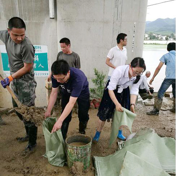由于連續暴雨,受淹嚴重,水北村農田最深處有1.5米。環(huán)科園(新街街道)黨員先鋒隊聞?dòng)嵳偌h員100余名,作為生力軍趕赴現場(chǎng)。在埂圩上大家傳送沙袋筑起大壩。朱文英作為中辰電纜黨群工作部負責人也帶領(lǐng)企業(yè)10多名黨員第一時(shí)間趕至現場(chǎng)。雖為女兒身,朱文英卻一點(diǎn)不讓須眉,她沒(méi)有安于后勤工作,而是不怕臟不怕累,一直戰斗在裝沙袋的第一線(xiàn),她一次又一次揚起鐵鍬,渾濁的泥漿沾滿(mǎn)了她的衣褲,臉上汗水和泥水早已分不清楚。