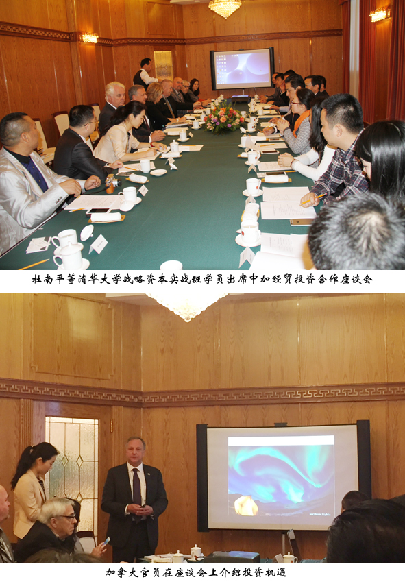 10月7日,以江蘇中辰電纜有限公司董事長(cháng)杜南平、河北燕新建材有限公司董事長(cháng)王季文等學(xué)員為代表的清華大學(xué)戰略資本實(shí)戰班遠赴加拿大,出席參加了中加經(jīng)貿投資合作座談會(huì ),并做客中國駐加拿大大使官邸,受到中國駐加拿大大使羅照輝的親切接見(jiàn)。