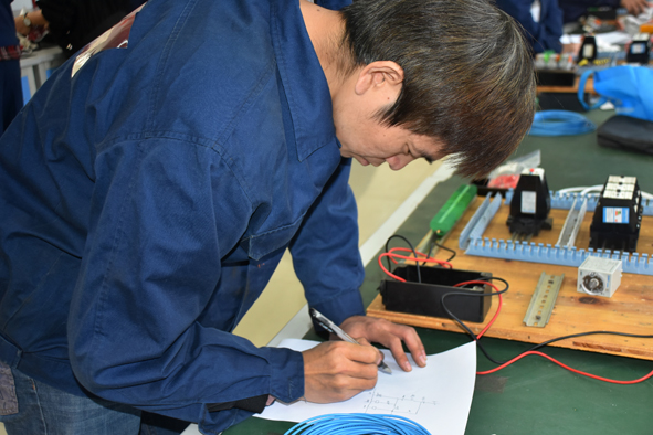 畫(huà)圖紙,選配件,接線(xiàn)、調試、通電……10月31日,在宜興電大實(shí)訓基地,中辰電纜第四屆職工崗位技能競賽電工實(shí)踐操作考試同臺比拼。