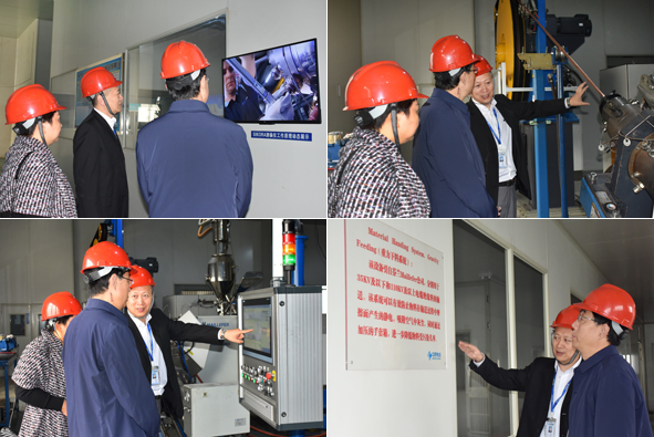 在總經(jīng)理姜一鑫的陪同下,李區長(cháng)分別考察了公司檢測中心和高壓電纜廠(chǎng),并重點(diǎn)考察了公司自芬蘭引進(jìn)的麥拉斐爾交聯(lián)電纜生產(chǎn)線(xiàn)的生產(chǎn)制造過(guò)程。姜一鑫向李區長(cháng)詳細介紹了產(chǎn)品的研發(fā)、生產(chǎn)、銷(xiāo)售等流程,有序的現場(chǎng)管理、規范的流程管控、先進(jìn)的科研水平,得到了李區長(cháng)的充分肯定和高度評價(jià)。