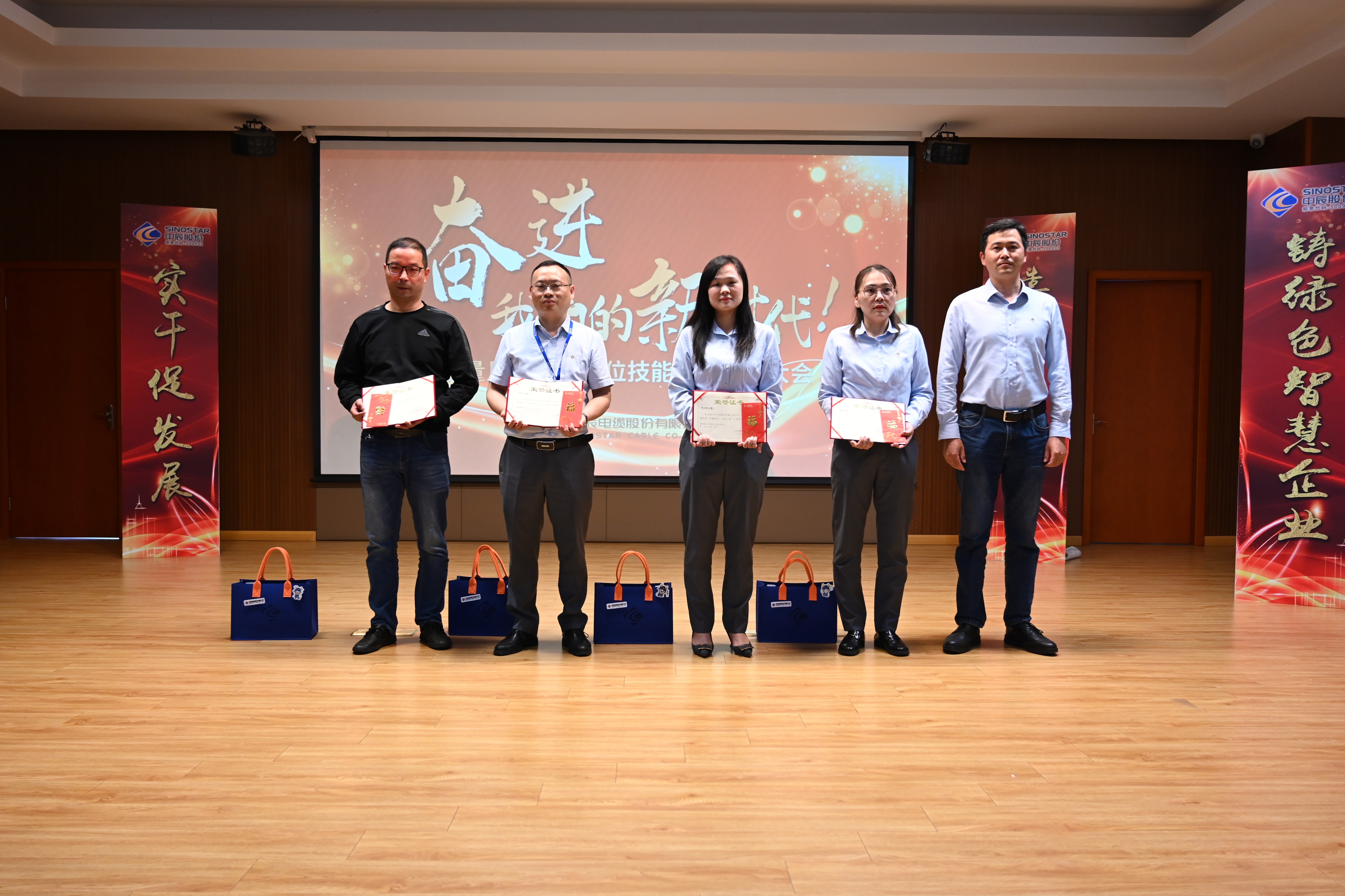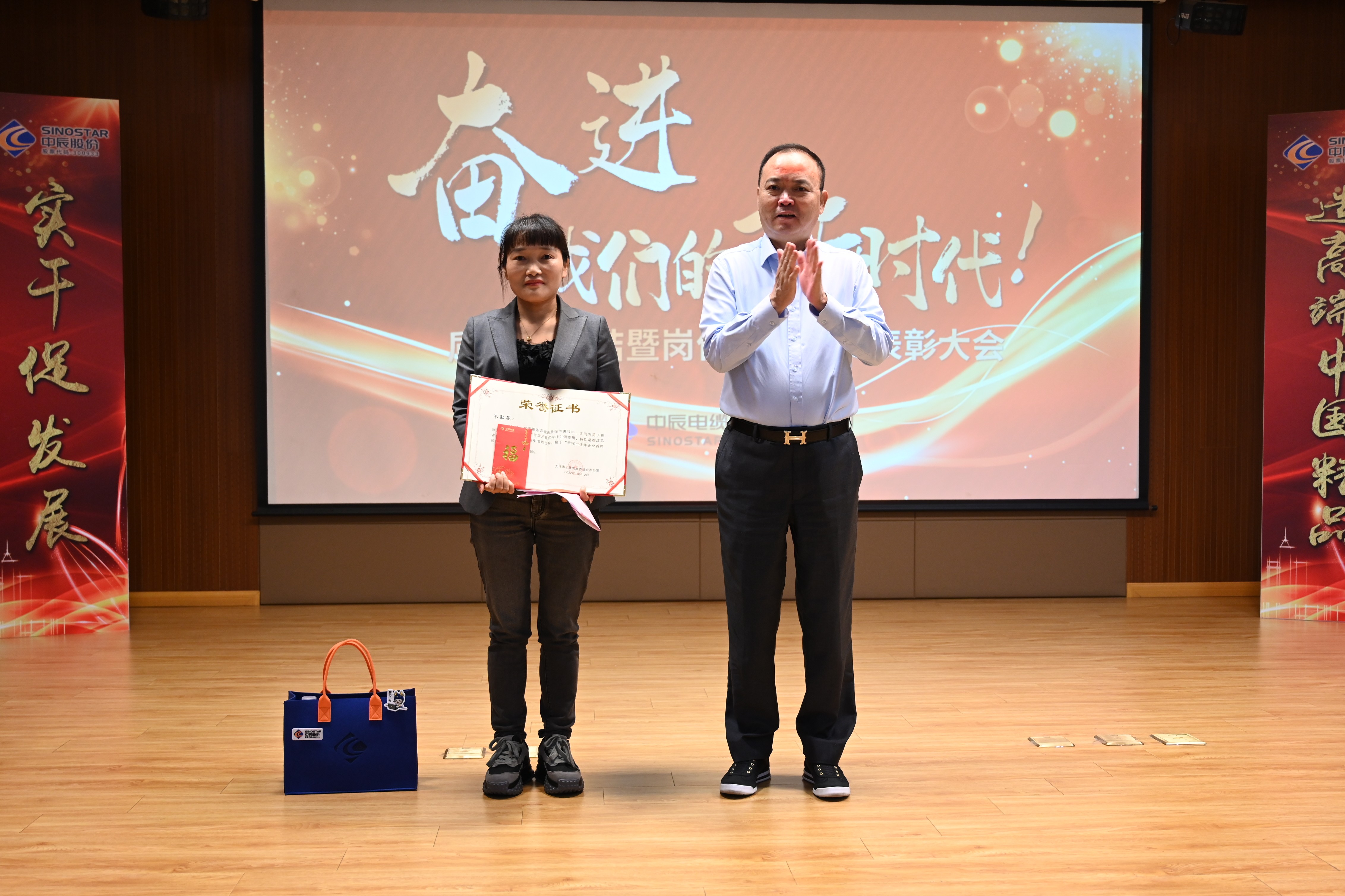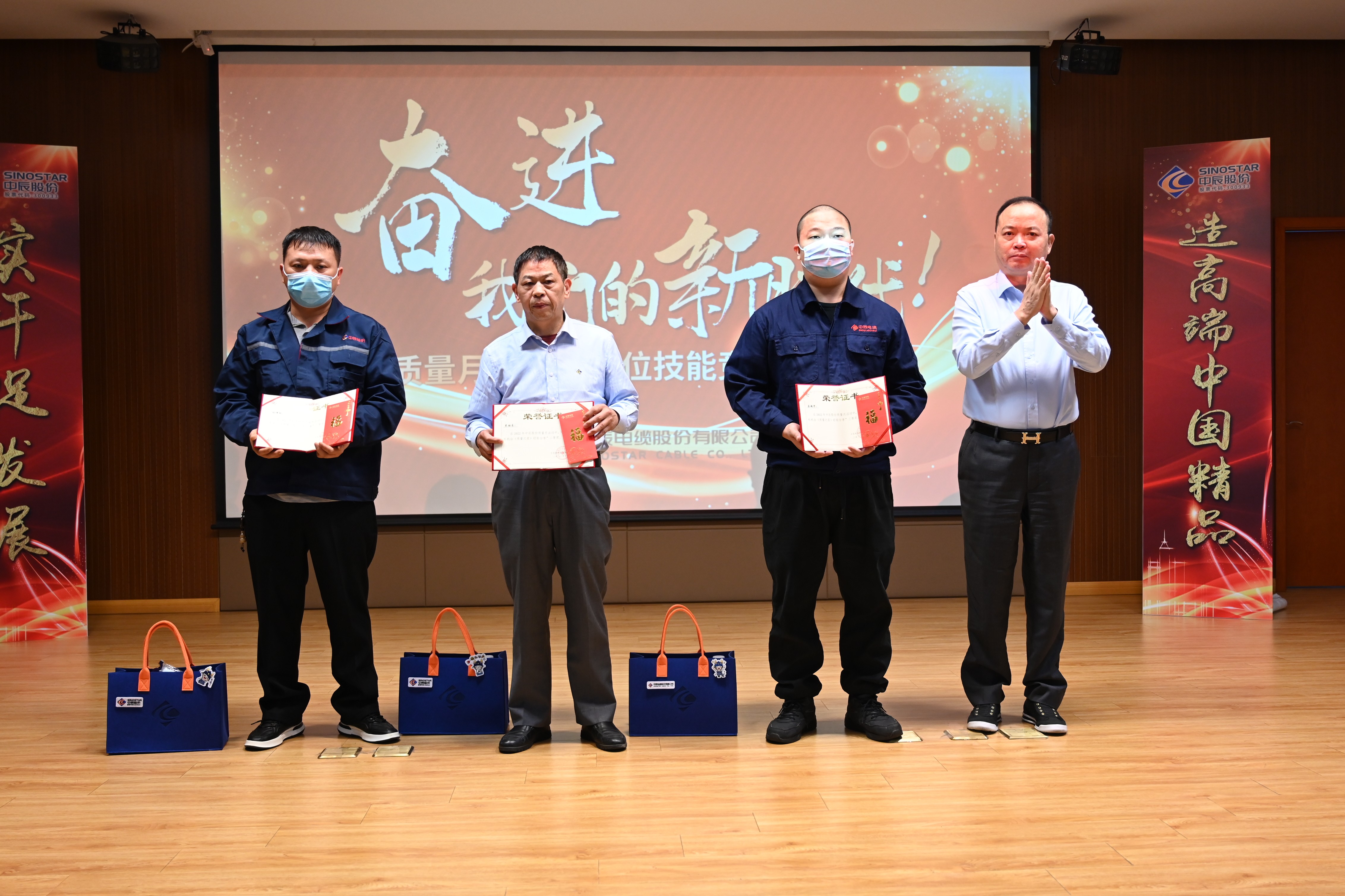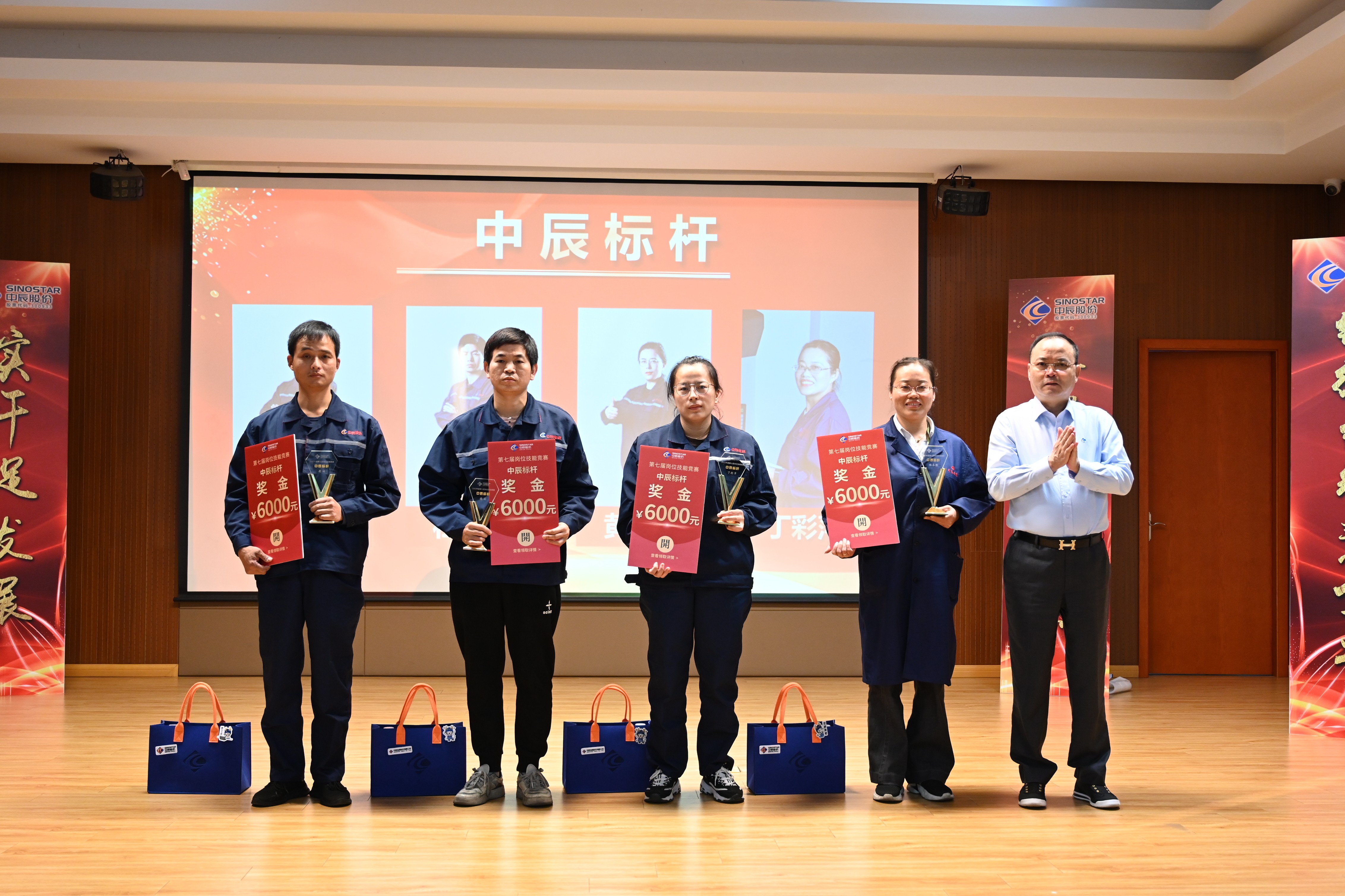 會(huì )上,總經(jīng)理姜一鑫宣讀了《關(guān)于表彰中辰股份質(zhì)量月活動(dòng)暨崗位技能競賽優(yōu)秀集體和先進(jìn)個(gè)人的決定》:授予潘晶等4名員工“中辰標桿”稱(chēng)號,對左銀甫、徐建群等獲獎員工給予表彰獎勵;董事長(cháng)杜南平為獲獎人員頒發(fā)獎杯與紀念品。