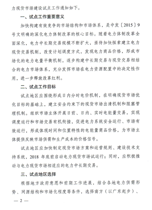 據悉,國家發(fā)改委、國家能源局于8月28日聯(lián)合下發(fā)了《關(guān)于開(kāi)展電力現貨市場(chǎng)建設試點(diǎn)工作的通知》特急文件,通知中稱(chēng),2018年底前啟動(dòng)電力現貨市場(chǎng)試運行,積極推動(dòng)與電力現貨市場(chǎng)相適應的電力中長(cháng)期交易。結合各地電力供需形勢、網(wǎng)源結構和市場(chǎng)化程度等條件,選擇南方(以廣東起步)、蒙西、浙江、山西、山東、福建、四川、甘肅等8個(gè)地區作為第一批試點(diǎn),加快組織推動(dòng)電力現貨市場(chǎng)建設工作。
