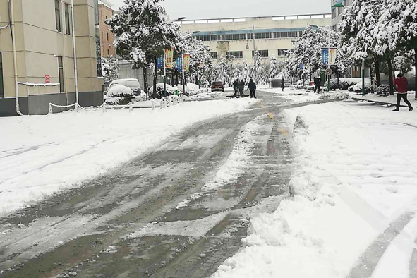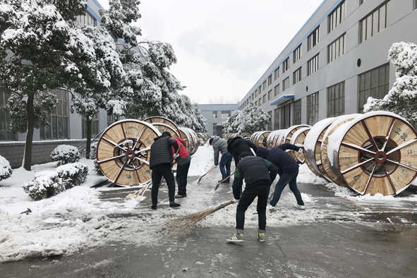 連日的降雪讓全市多處道路積雪結冰,中辰電纜廠(chǎng)區道路上也是白茫茫一片。