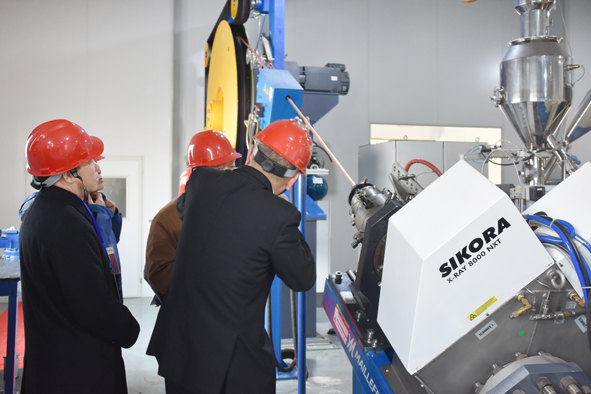 公司設備選型及后續擴能新增設備,均秉承質(zhì)量、效率優(yōu)先,國際、國內先進(jìn)原則。先后引進(jìn)國際領(lǐng)先的兩條麥拉斐爾中高壓生產(chǎn)線(xiàn),配備德國西科拉在線(xiàn)測偏儀,引進(jìn)臺灣制造雙層共擠架空電纜生產(chǎn)線(xiàn),產(chǎn)品質(zhì)量及效能創(chuàng )行業(yè)領(lǐng)先水平。同時(shí),根據自動(dòng)化、智能化、信息化要求,不斷進(jìn)行設備改造,為企業(yè)提質(zhì)增效打下堅實(shí)基礎。近年來(lái),公司積極與無(wú)錫市技監局、無(wú)錫市計量局合作,開(kāi)展智能化生產(chǎn),利用大數據分析、手機端顯示等新型手段,實(shí)時(shí)管控生產(chǎn)效益,實(shí)現了“生產(chǎn)數字化、管理智能化”的先進(jìn)水平。公司與中國聯(lián)通達成5G戰略合作,將通過(guò)“全方位AI監控”、“全流程BI平臺辦公”和“全聯(lián)動(dòng)MES平臺車(chē)間”三部分內容,正式開(kāi)啟5G智慧工廠(chǎng)項目。