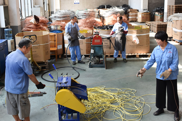 一日復一日,他們拿著(zhù)錘子,或者擰著(zhù)螺絲刀,對各種銅鋁芯電纜進(jìn)行拆解、對各種廢品進(jìn)行分類(lèi),工作枯燥乏味卻依然井然有序。有些廢品上,塵土、機油、銹斑是難免的,偶爾也會(huì )被磕傷、碰傷,但他們不怕苦、不怕臟、不怕累,堅信“眾人拾柴火焰高”,用每個(gè)人的無(wú)私奉獻,為工作效率的提高打下了扎實(shí)的基礎。