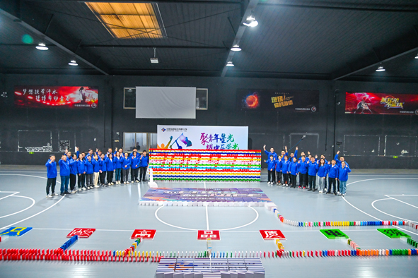 在多米諾骨牌環(huán)節,十幅圖案,幾萬(wàn)張骨牌,不僅考驗著(zhù)學(xué)員們的體力、耐力和意志力,而且還培養參與者的智力、想象力和創(chuàng )造力。通過(guò)研究任務(wù)、角色分配、動(dòng)手合作,在推倒重來(lái)、整體連接等環(huán)節的不斷努力下,學(xué)員們共同創(chuàng )造并搭建成一個(gè)環(huán)環(huán)相扣、精巧連接的聯(lián)動(dòng)藝術(shù)裝置作品,感受到了創(chuàng )新與合作帶來(lái)的成就感與團隊榮譽(yù)感。