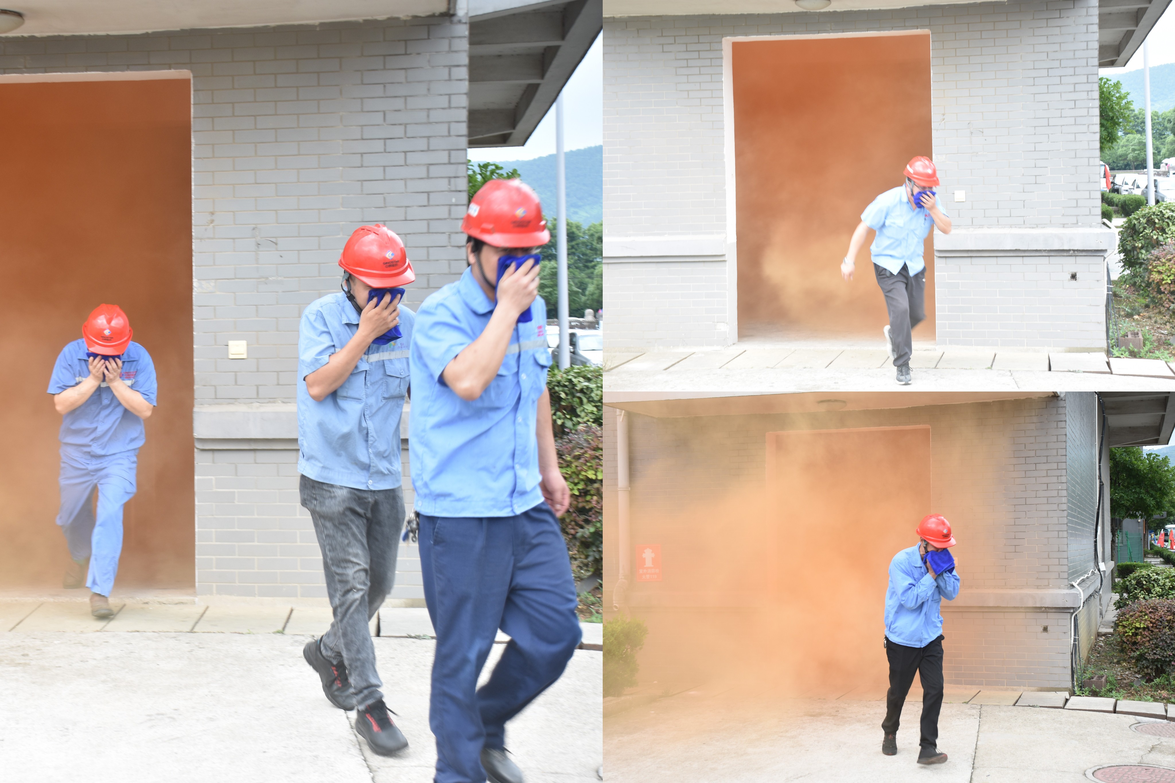 應急演練開(kāi)始后,消防警報拉響,演練模擬員工宿舍樓電器著(zhù)火,值班人員發(fā)現火情后立即上報,隨即啟動(dòng)消防應急疏散預案。按照預案要求,安全員有條不紊地切斷非消防電源,快速組織疏散樓層內員工,員工們捂住口鼻,彎腰小步快走,僅用時(shí)不到5分鐘全部人員從消防通道疏散至安全區域,應急疏散演練圓滿(mǎn)成功。